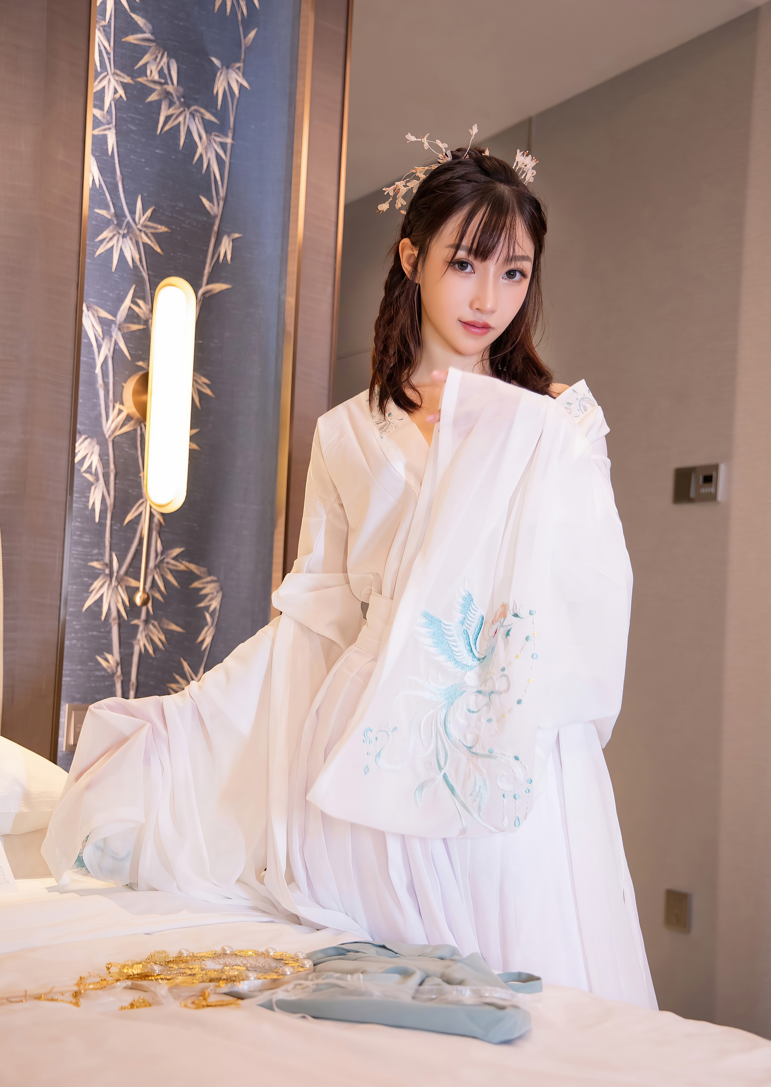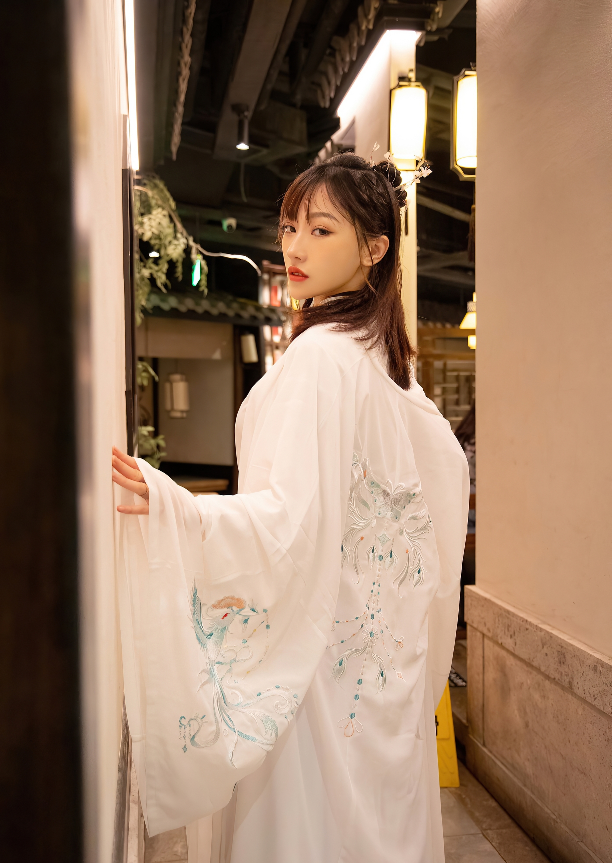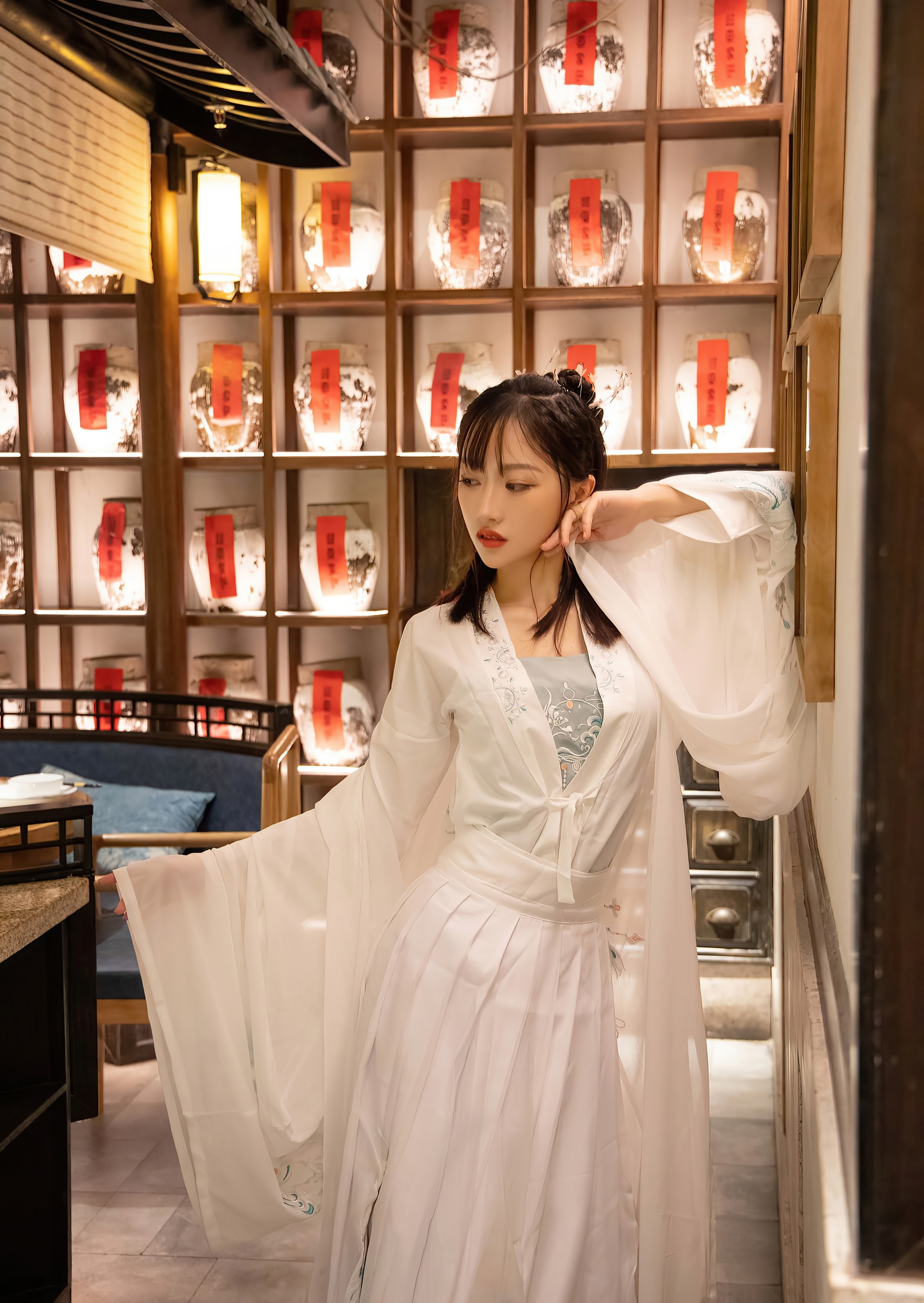 她是那个在时光里独自守候的仙子,用一身素衣,一袭清辉,将“相思”二字,写成了最美的诗篇。她不言不语,却已道尽千言万语。她的美,因思念而更显动人;她的孤独,因优雅而更显高贵。她站在那里,便是一个关于“等待”的永恒故事,一个令人心碎又心醉的、东方古典爱情的绝唱。