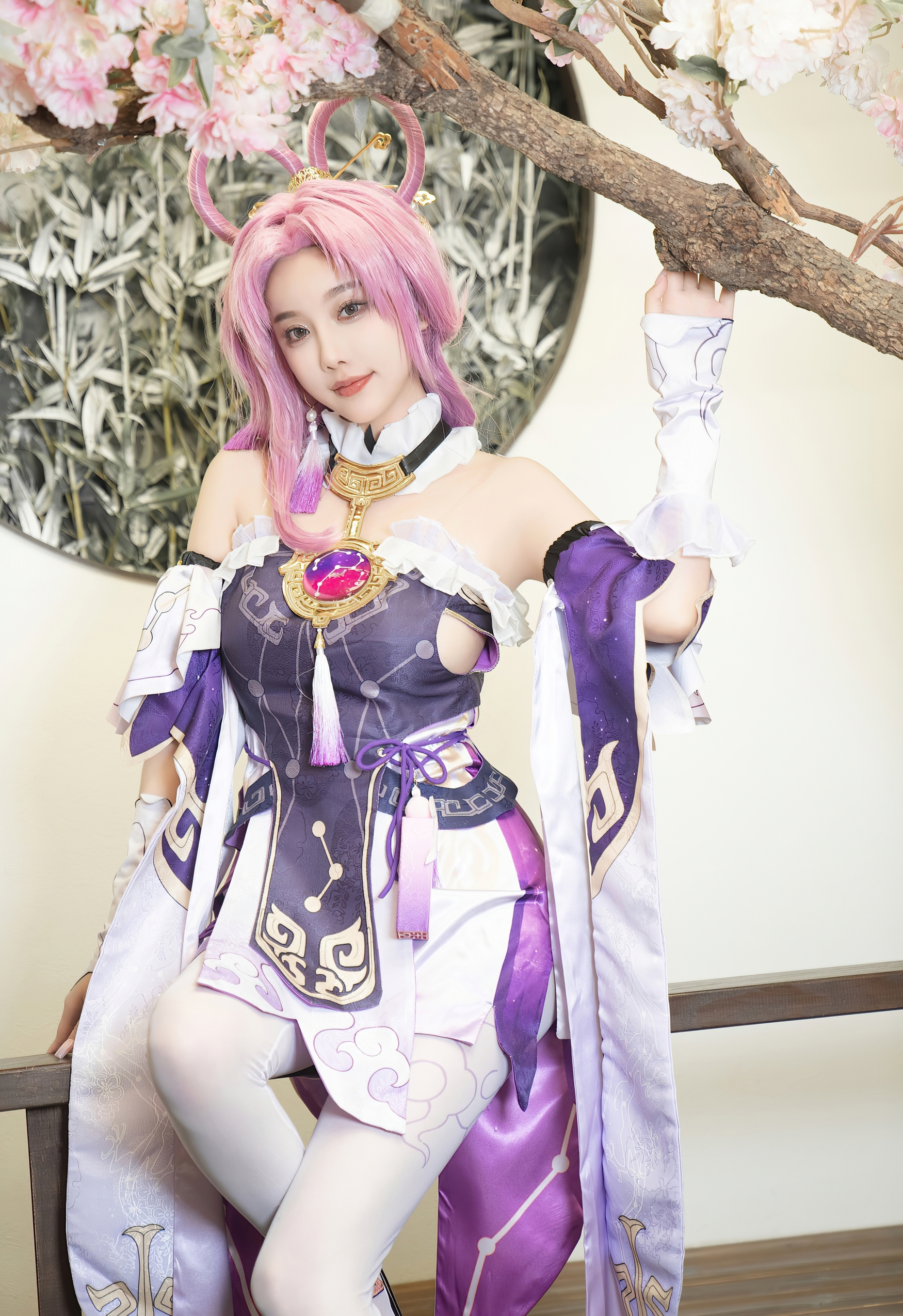 她静坐于木榻之上,指尖轻抚胸前那枚镶嵌着星辰纹路的紫晶吊坠,眸光温柔而深邃,仿佛能映照出整个宇宙的静谧。衣袖翻飞间,层层叠叠的褶皱如浪花涌动,每一寸布料都浸染着东方的典雅与现代的浪漫。白皙的肌肤在阳光下泛着柔光,宛如初春晨露,纯净无瑕。