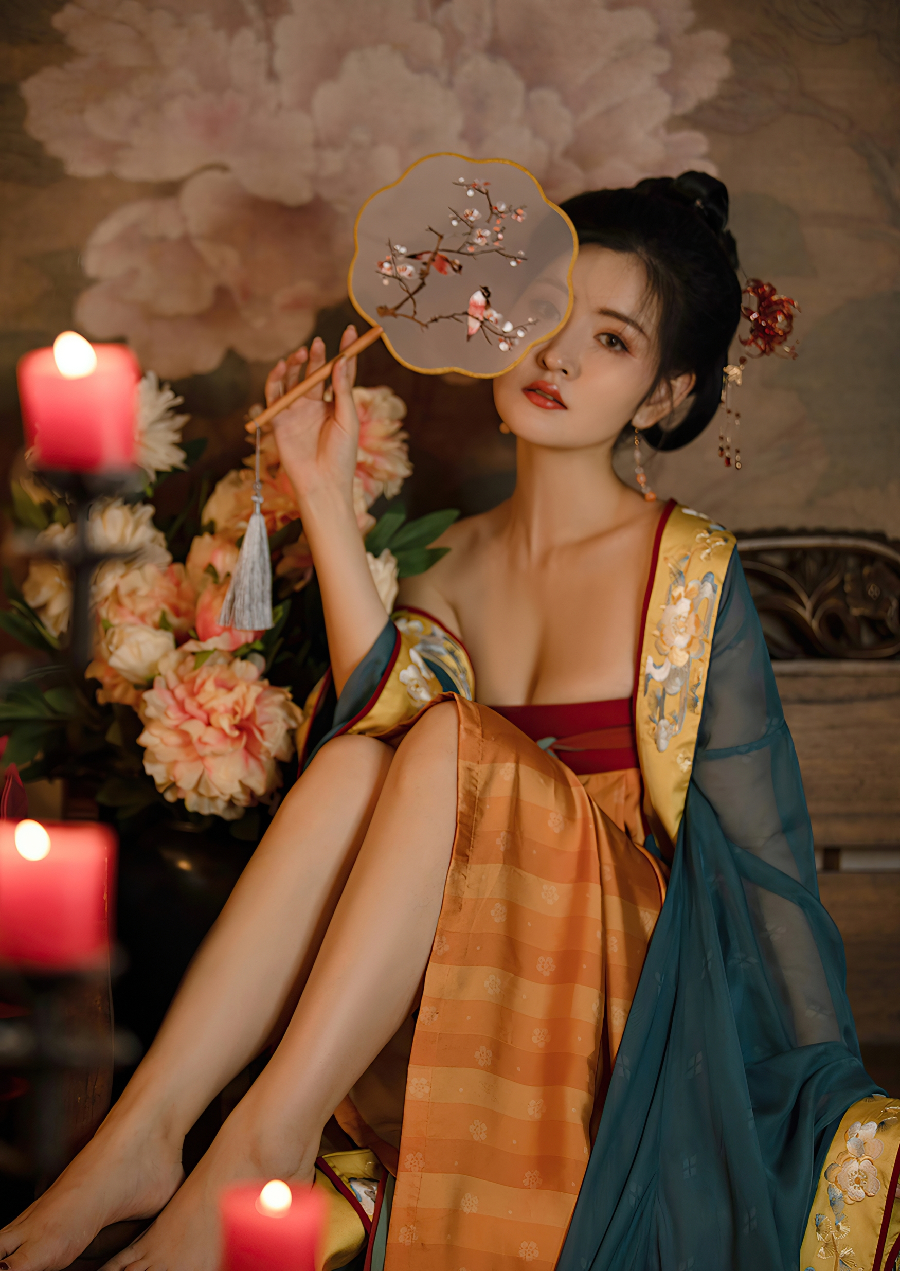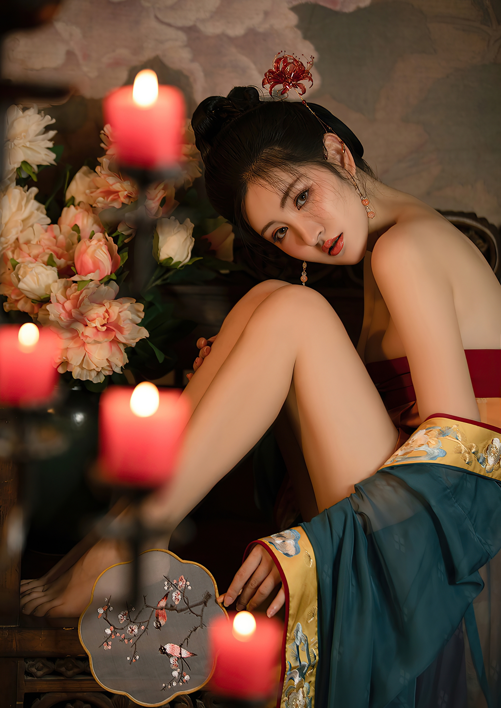 在这方寸之间,世界仿佛只剩下她一人。她与花为伴,与烛共语,与扇同梦。每一帧画面都是一幅工笔重彩的仕女图,每一道光影都是一首婉约的词章。