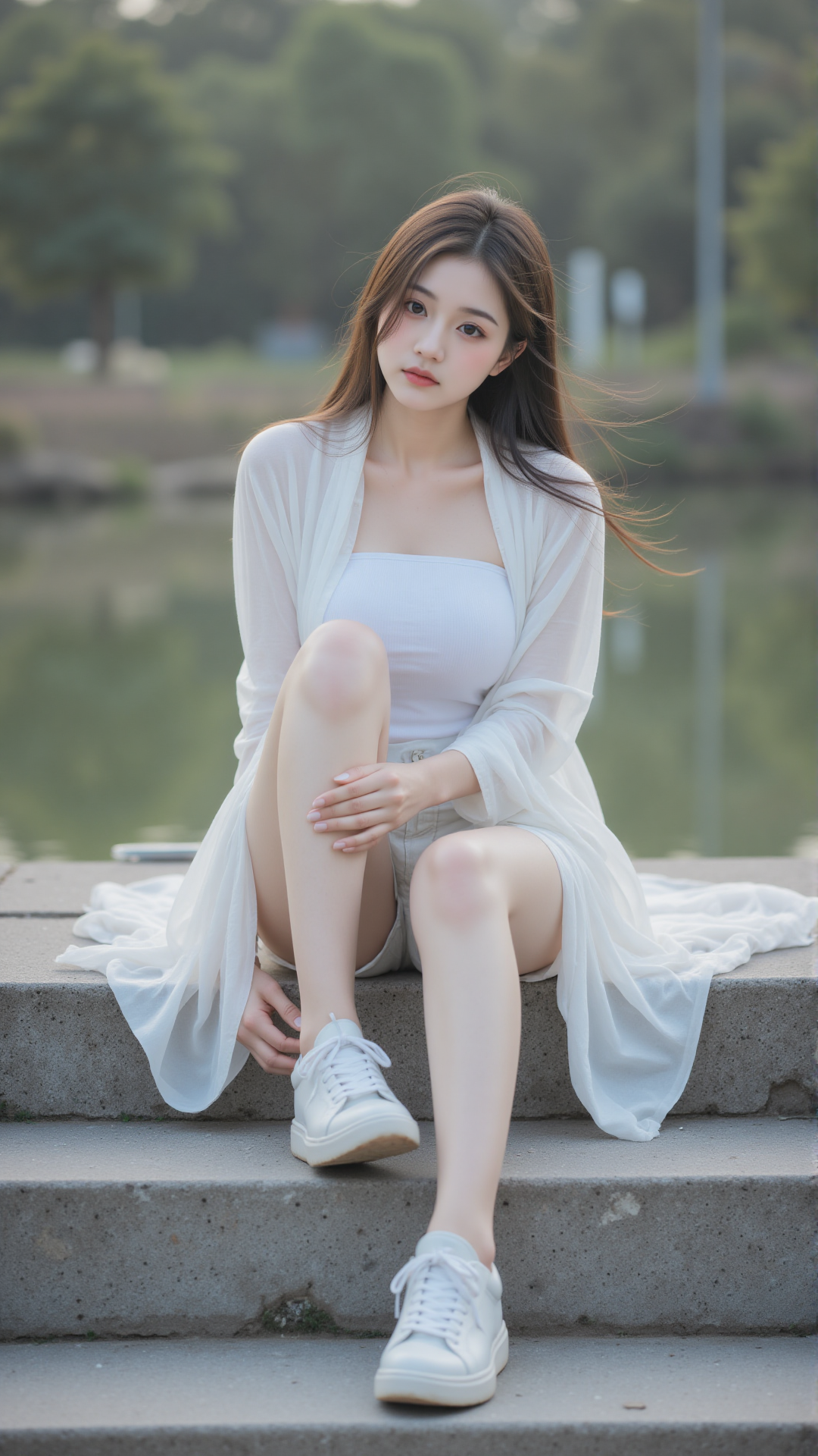 风吹过,衣角翻飞,像一片云落在了人间。她抬眼望向远方,目光清澈,仿佛藏着整个夏天的温柔与秘密。那是一种无需言语的吸引力,一种让人心跳漏拍的静谧之美。