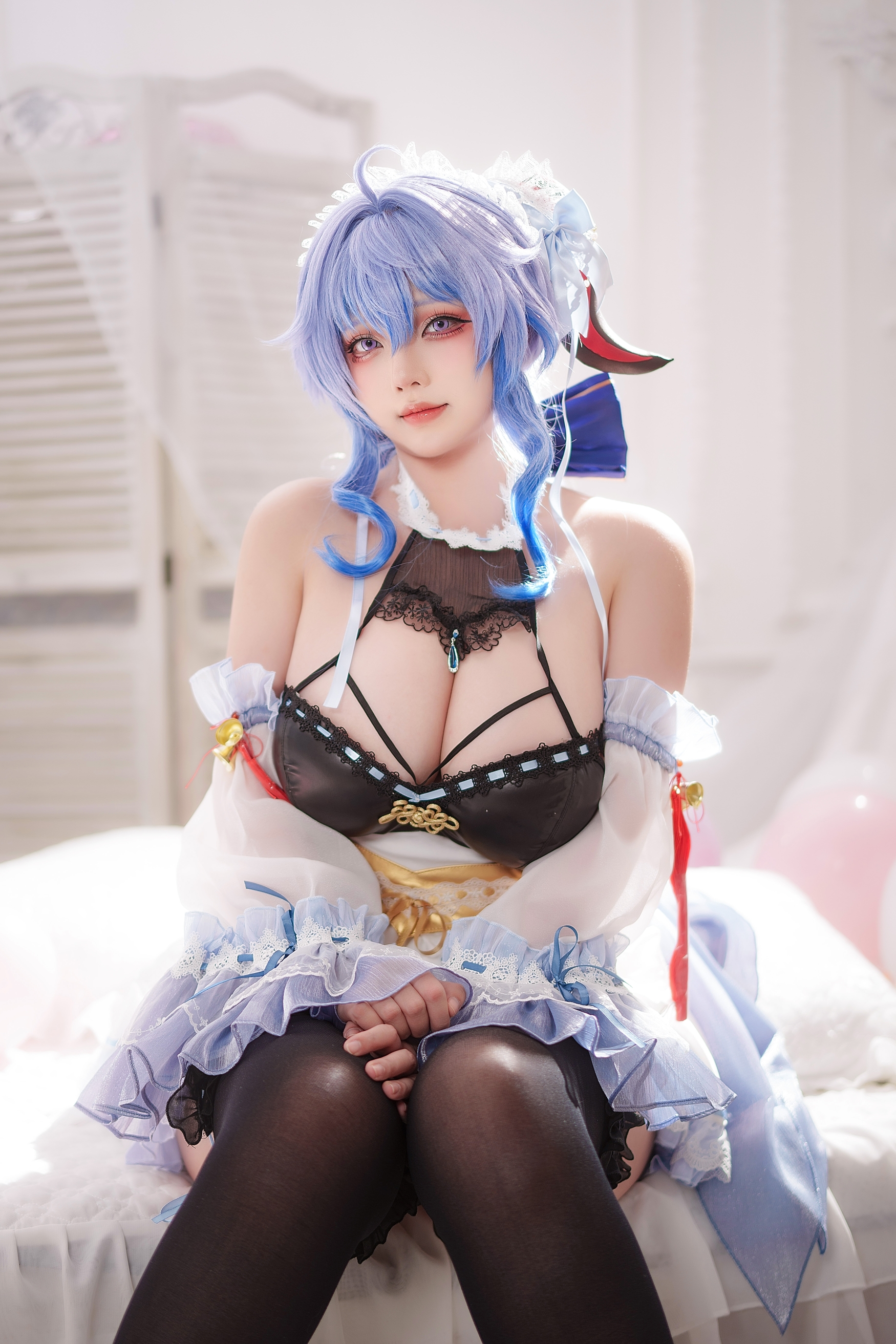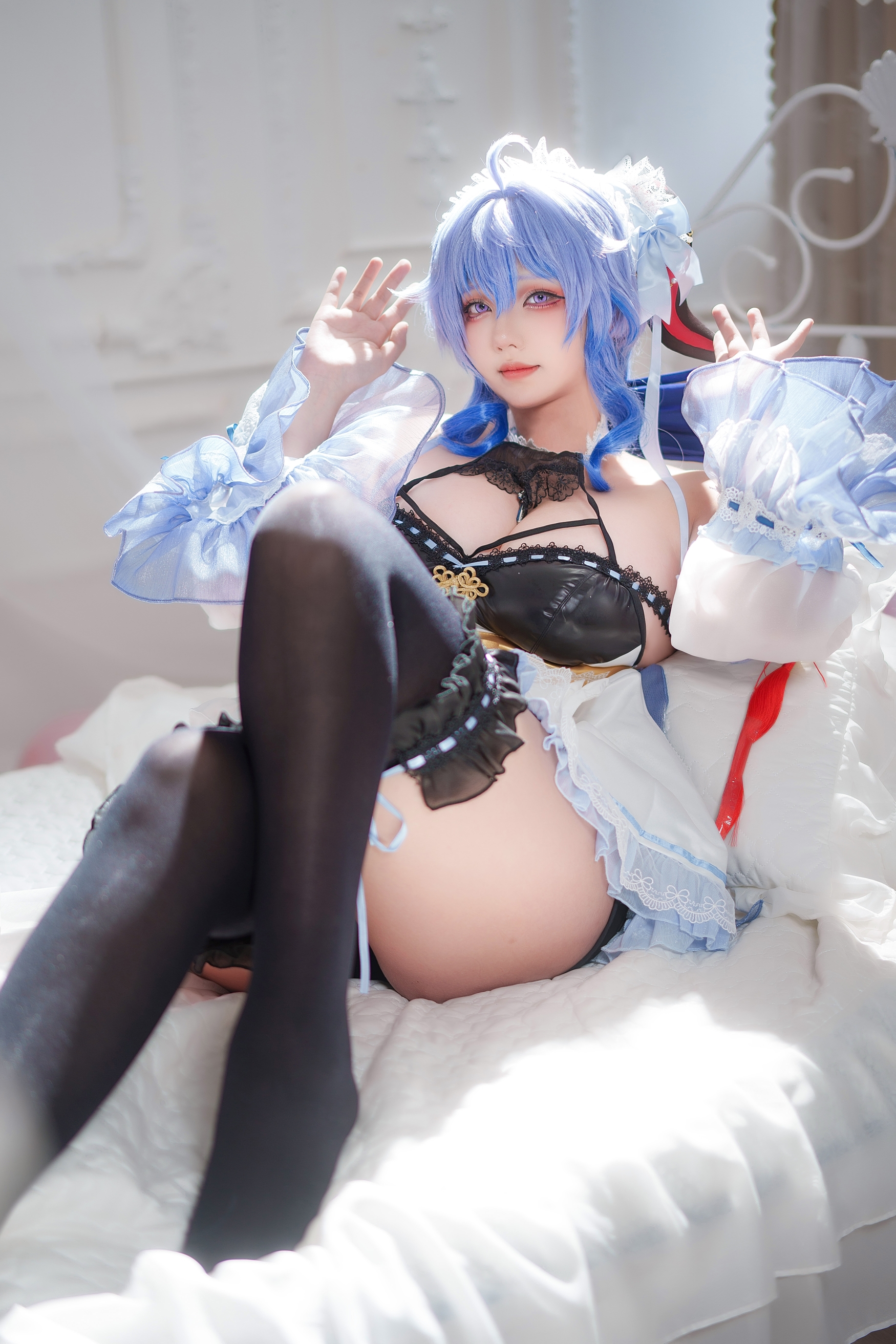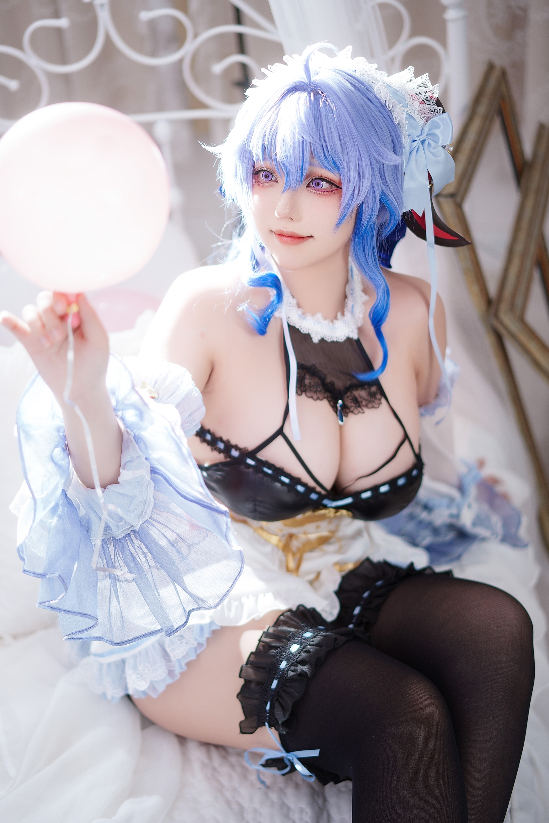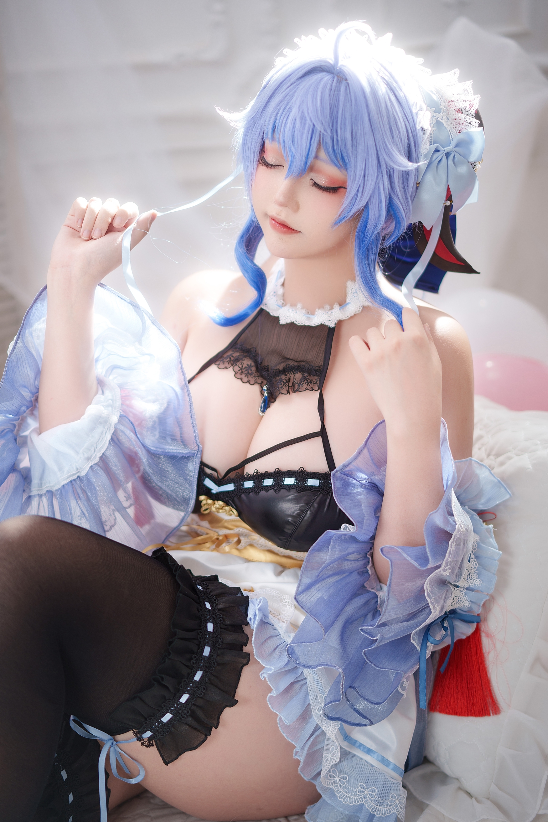 晨光如纱,悄然漫过窗棂,洒在那抹蓝紫相间的发丝上。她静坐于白纱缭绕的床榻之上,仿佛自梦境中缓缓走来——一袭洛丽塔风格的华服,将古典与幻想完美融合。她的发间缀着洁白蕾丝花冠,淡蓝缎带如溪流般垂落,随风轻颤;两缕卷曲的蓝发如月光下的海浪,在阳光下泛着微光。