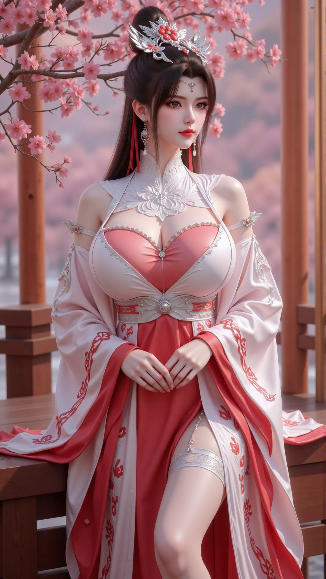春夜微凉,月光如练,悄然漫过雕花窗棂,洒在青石铺就的庭院里。樱花正盛,粉白花瓣随风旋舞,如雪如雾,轻轻落在她的肩头,又滑入她宽大的袖口——仿佛天地也为这一刻屏息。